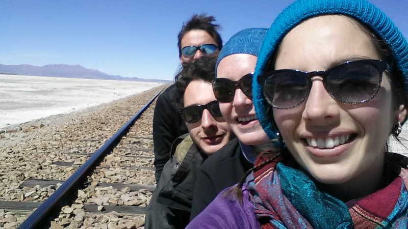 Pause midi nous sommes allés chercher des saltenas (spécialités locales de chaussons salés) dans une boutique qui vend (il paraît) les meilleurs du pays. Nous avons pu les déguster à la gare juste avant de partir mais le pantalon de Cyril en a fait les frais… C’est rempli de jus donc sans assiette le jus est sorti de tous les côtés retapissant le sol, le siège et les vêtements ! Au moins nous étions assortis à l’odeur des locaux avec cette mésaventure!