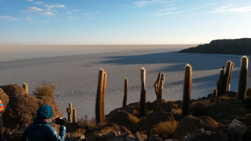 Avec ses nombreux cactus qui capturent la lumière et la vue à 360 degrés sur le Salar, il faut bien dire que l’endroit est majestueux. On prend quelques photos pour immortaliser le moment.