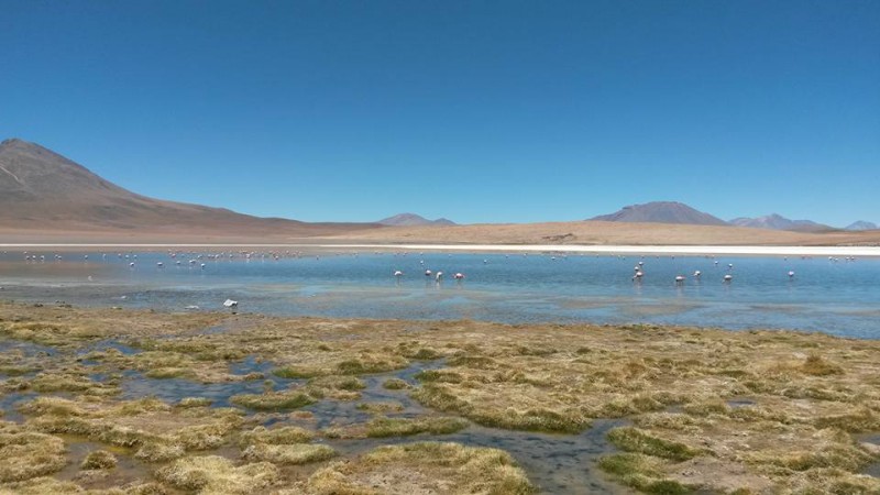 Ni une, ni deux nous revoilà dans la jeep, à traverser 5 lagunes, les unes après les autres. Nous ne nous arrêtons que le temps de quelques photos de flamants roses (il faut bien compenser le manque de lamas sur cette partie de route…).
